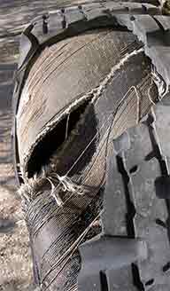 side back tyre had exploded. Not just punctured but a hole you could fit